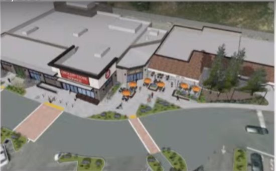 The Commission still had some issues with the fasade of the grocery store building and the landscaping between the pad buildings, but agreed to discuss this at a future date in order to allow the applicant to proceed with approved plans. |  | Aerial view of potential changes to Rheem Valley Shopping Center. Images courtesy Moraga Planning Dept | | | | | | | | | | | |