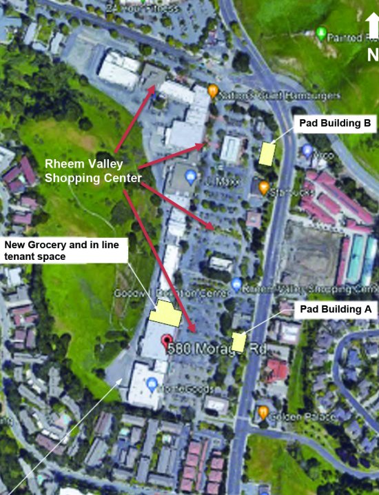 | Published January 3rd, 2024 | Rheem Valley Shopping Center on track for new grocery store | | By Vera Kochan |  | Architect's rendering of new Rheem Valley Shopping Center grocery store. Images courtesy Moraga Planning Dept | It appears that Moraga Shopping Center's Safeway is going to have some competition in the not-so-distant future. The Planning Commission approved a partial redevelopment of the Rheem Valley Shopping Center during its Dec. 12 meeting, and basically gave a green light for the proposed 17,404-square-foot grocery store. Additional development involves two new free-standing pad buildings (a pad is a commercial space that is next to or adjacent to an already existing building), parking lot changes, and new landscaping.