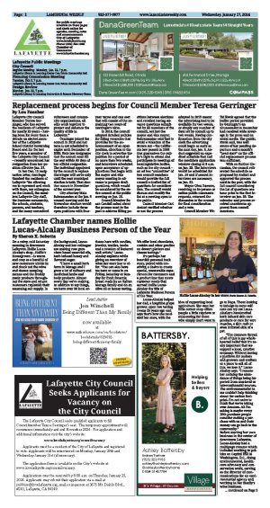 Hollie Lucas-Alcalay will be honored at a special dinner Feb. 1 at the Lafayette Park Hotel. The evening will include a State of the City address by incoming Lafayette Mayor Gina Dawson. For tickets or more information, visit