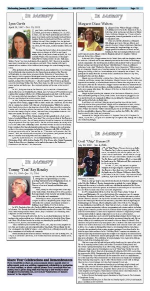 Lynn was laid to rest on Dec. 30 at Oakmont Memorial Park in Lafayette. A Celebration of Life will be held on Sunday, Feb. 18 at 12 p.m. at the Orinda Community Center. In lieu of flowers, donations can be made in her name to the Parkinson's Foundation or the Michael J. Fox Foundation.