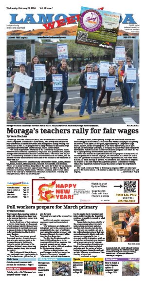 | Published February 28th, 2024 | Moraga's teachers rally for fair wages | | By Vera Kochan |  | Moraga Teachers Association members hold a Feb. 21 rally at the Rheem Boulevard/Moraga Road intersection. Photo Vera Kochan | The Moraga Teachers Association (MTA), who are members of the Classified School Employees Association ( a labor union), held a very vocal rally at the busy intersection of Rheem Boulevard and Moraga Road during evening commute hours on Feb. 21. Its purpose was to bring attention to the current wage negotiations between MTA and the Moraga School District (MSD).