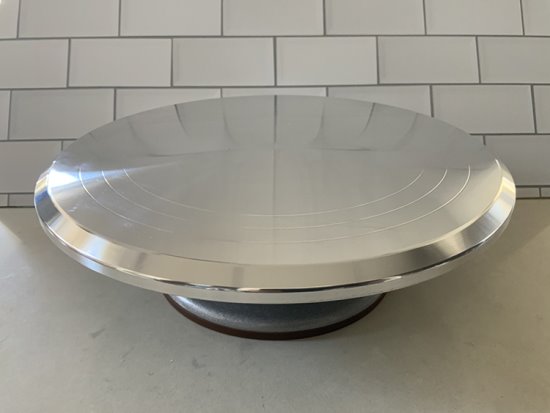 A cake spinner like this one is not absolutely necessary, but it sure makes cake decorating easier! |