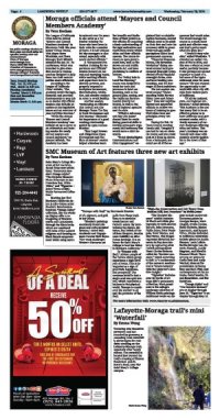 Page 4 - 5 Moraga officials attend 'Mayors and Council Members Academy'SMC Museum of Art features three new art exhibitsLafayette-Moraga trail's mini 'Waterfall'Higher Ground's new wellness center offers something for every 'body'
