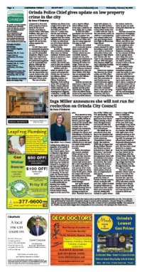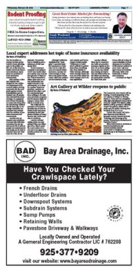 Page 6 - 7 Orinda Police Chief gives update on low property crime in the cityInga Miller announces she will not run for reelection on Orinda City CouncilLocal expert addresses hot topic of home insurance availabilityArt Gallery at Wilder reopens to public