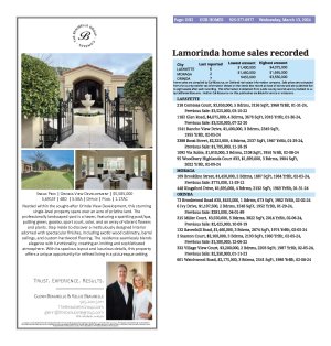 | Published March 13th, 2024 | Lamorinda home sales recorded | | | | | LAFAYETTE