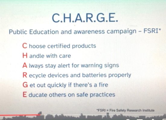 When considering the greater amount of charge that battery has, "that can create the problem for us as first responders and you as the user of these devices," Dick continued.