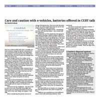 Care and caution with e-vehicles, batteries offered in CERT talk