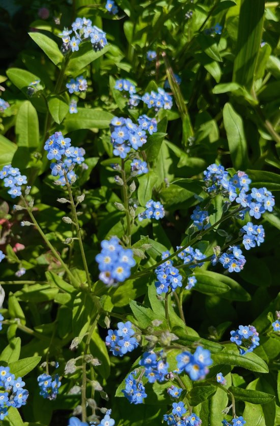 My roses, which I heavily pruned in February, are also blooming. Not to be overlooked, forget-me-nots blanket shaded areas, while woodland hyacinths, also known as English bluebells, and sea foam statice have naturalized in sunny locations dressed to impress the garden in shades of blue and purple. Supporting the butterfly and bird population, the white clusters of viburnum flowers provide nectar for the flitting butterflies, while the forming black berries feed the birds. California poppies, calendula, tulips, daffodils, potato vine, anemones, Dutch iris, bearded iris, Calla lilies, periwinkle, a variety of succulents, and masses of weeds carpet my meadow hillside and orchard. I'll be busy for months to come!