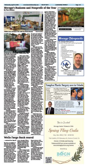 | Published April 10th, 2024 | Two individuals in Moraga's Wells Fargo Bank mural identified | | By Vera Kochan |  | Joan Holt receives framed replica of WFB mural that depicts her siblings in the back row (second from left) Sharron Levy and (second from right) Sam Levy at Willow Springs School in 1957 Photo Vera Kochan | Customers of the Wells Fargo Bank in Moraga have now grown used to the lobby's mural, reflecting some of the town's history, that was installed in January of 2020. WFB initiated their Community Mural Project back in 1998, and has since installed more than 2,400 murals in locations nationwide. More locally, there are over 175 throughout the Bay Area. The murals are not painted - rather, they are designed by a team of graphic artists to create collage-style historical art.