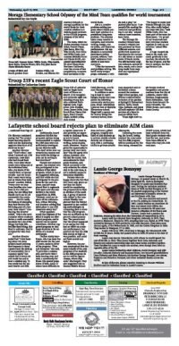 Moraga Elementary School Odyssey of the Mind Team qualifies for world tournamentTroop 219's recent Eagle Scout Court of HonorLaszlo George Bonnyay