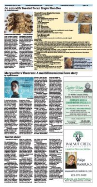 Page 8 and 9 Letters to the editorLafayette Police BlotterMoraga Police BlotterOrinda Police BlotterGo nuts with Toasted Pecan Maple BlondiesMarguerite's Theorem: A multidimensional love story