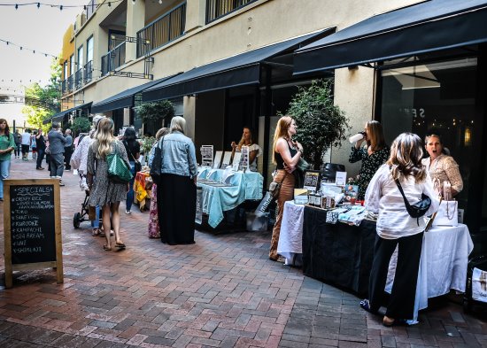 | | Makers' Market, Theatre Square, Friday May 3. Photos Sora O'Doherty | | | | | | Taylor Marlatte of Bay Area Makers Markets joined forces with Orinda's Theatre Square, facilitated by Orinda planner Darin Hughes, to host a Makers' Market on the evening of Friday, May 3. Although Marlatte has put together larger groups of vendors in some locations, she kept Theatre Square numbers low, with under two dozen vendors offering their products. The weather was fine, and, as Marlatte pointed out, Theatre Square restaurants were doing a brisk trade, so there was a sufficient audience browsing the market, perhaps thinking of Mothers' Day, coming up on May 12.