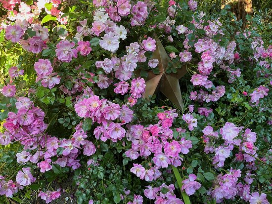 French carpet roses are unscented yet blanket the hill. Photos Cynthia Brian |