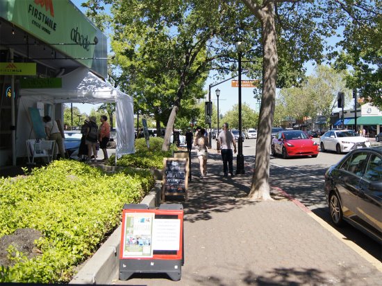 | Published May 22nd, 2024 | Lafayette's Artisan Walk displays the best of local business and art | | By Elaine Borden Chandler |  | Shoppers walk down Mount Diablo Boulevard and stop at Susan Goldie's booth at the Lafayette Artisan Fair, Saturday, May 11. Photo Elaine Borden Chandler | On the hot and sunny Saturday afternoon of May 11, Lafayette's downtown was bustling. Shoppers chatted with local artisans displaying their crafts in booths that dotted Mount Diablo Boulevard and wandered into local businesses showcasing locally sourced goods. A knot of women laughed together with Susan Goldie in a booth full of her paintings at Abode Flooring and Finishing, while a father and his son studied Jeff Heyman's photographs in front of Reasonable Books. Teenagers goggled at a mass of Mother's Day bouquets inside Floral Arts Florist and Arlynn Bloom painted vibrant watercolors in front of Hollie's Homegrown. People called out to friends they hadn't seen since before Covid. Rhoda Larner and her friend Adrienne Jones came from out of town to do some Mother's Day shopping. "We're excited about the brand-new vintage store, Vintage Vida, that just opened on Tuesday," said Larner. The cause of the all this exuberant activity was Lafayette's inaugural Artisan Walk.