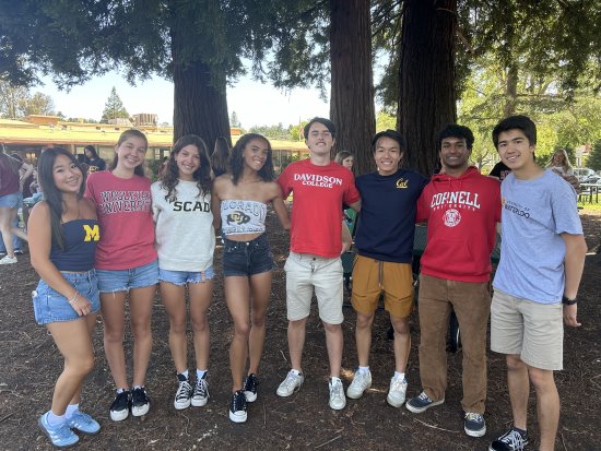 | | From left: Jessica Youn (University of Michigan), Grace Bell (Wesleyan University), Addison Byrne (Savannah College of Art and Design), Addison Braitberg (University of Colorado Boulder), Casey Scheiner (Davidson College), Matthew Chan (University of California, Berkeley), Asher Patel (Cornell University), and Jason Wagner (University of Waterloo, Ontario) Photo Emma Wong | | | | | | On the morning of May 21, aromas of burritos, bacon, and muffins wafted from the Miramonte High School cafeteria as graduating seniors shared a breakfast. Donning college merchandise, students participated in Senior Day -- part of the Senior Spirit Week -- to send off the Class of 2024.