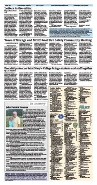 Page A8 and A9 Letters to the editorPeaceful protest as Saint Mary's College brings students and staff togetherJohn Patrick HessionLafayette Police BlotterMoraga Police BlotterOrinda Police BlotterCarrot Cake Scones