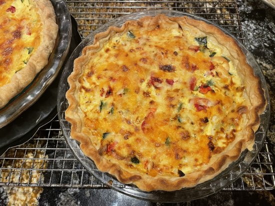 If you're in a hurry, you can use a pre-made crust or a box mix crust, but if you love a homemade crust for your quiche, it's best to partially pre-bake (blind bake) the pie crust before filling it and baking the whole dish. If you don't have pie weights or dried beans, use whatever you can to weigh down the crust. The main reason for this is so the empty shell doesn't collapse.