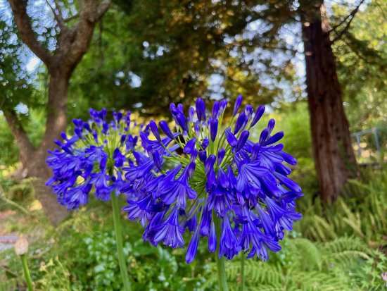 | Midnight blue agapanthus shine in the July landscape.   Photo Cynthia Brian |