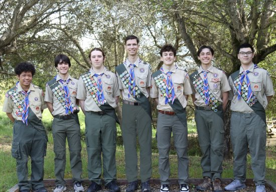 | Published July 3rd, 2024 | Orinda's Troop 303 honors seven Eagle Scouts | | Submitted by Mariah Finegan |  | Pictured from left: NickEng, Julian Rustigian, David Kepkep, Paul Stephan, Lucas Peterson, Collin Finegan, and Ethan Kong.? Photo provided | On May 18 Boy Scouts of America Troop 303B in Orinda celebrated?seven?Scouts who recently earned the highest rank in Scouting at an Eagle Court of Honor held at St. Stephen's Episcopal Church. The Eagle Scouts whose achievement was recognized included Miramonte High School student:. Nick Eng, Collin Finegan, David Kepkep, Ethan Kong, Lucas Peterson, Julian Rustigian, and Paul Stephan.