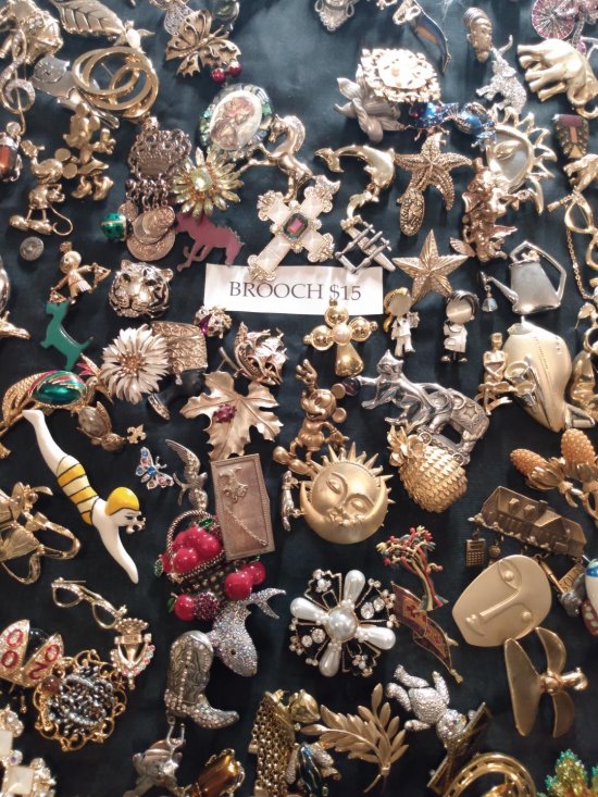 Moya Stone is a freelance fashion writer at www.overdressedforlife.com. |  | Designer shoes and handbags available at Maven Coco.? |  | Vintage brooches galore at Saint Anthony's. | | | | | | | | | |