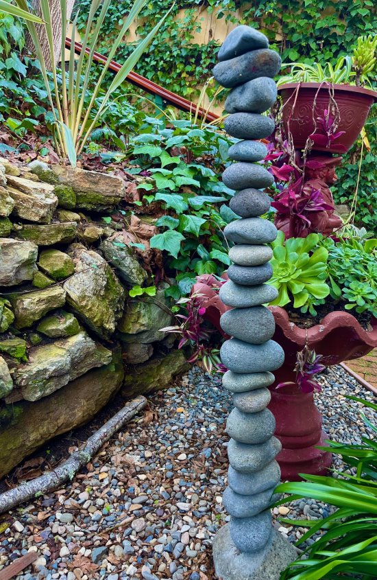 Add to your summer sweet garden with a rock cairn. Throughout history, stones have been piled high as memorials or markers. I suggest a rock cairn as a fun family nature project. Make a game of it.