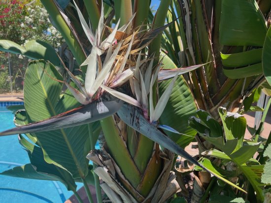 The blue giant bird of paradise, a native of South Africa, exhibits a crown of white sepals with a blue tongue. Photo Cynthia Brian |