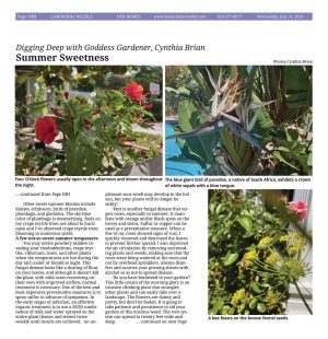 Other sweet summer blooms include daisies, echinacea, birds of paradise, plumbago, and gladiolus. The sky-blue color of plumbago is mesmerizing. Buds on my crape myrtle trees are about to burst open and I've observed crape myrtle trees blooming in numerous yards.