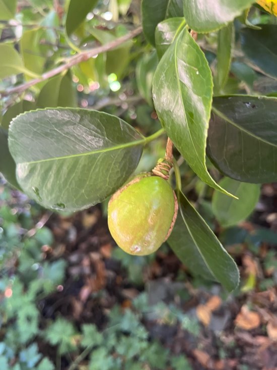 The "fruit" of a camellia tree is filled with seeds that will grow more camellia plants. Photo Cynthia Brian |