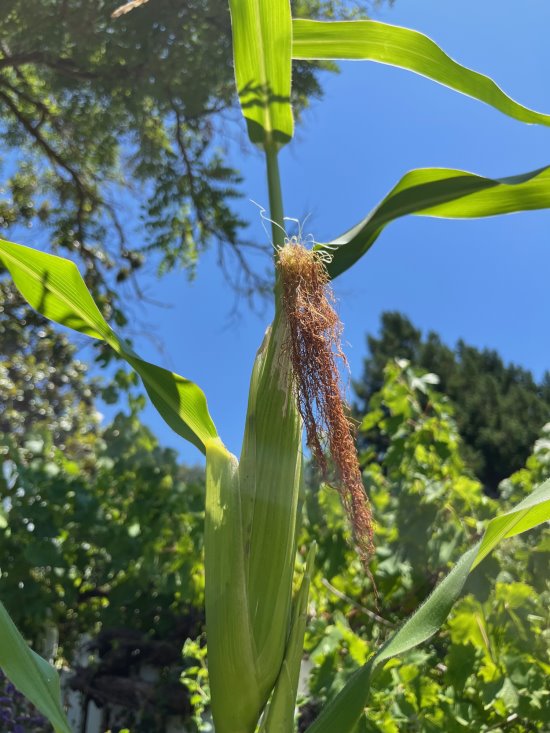 A stalk of white corn is nearing harvesting. Photo Cynthia Brian |