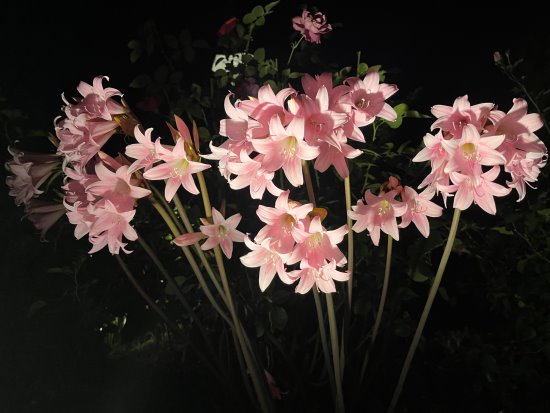 Lighter pink Naked ladies shine at night. Photos Cynthia Brian |