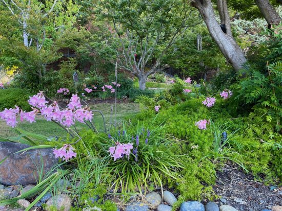 Naked ladies are the stars of this shade garden. Photos Cynthia Brian |