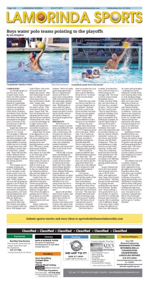 | | Published October 23rd, 2024 | Boys water polo teams pointing to the playoffs | | | By Jon Kingdon |  | | Campolindo's Hayden O'Hare Photos Shirley DeFrancisci | CAMPOLINDO