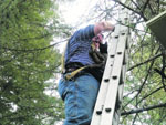 Wednesday, March 26, 2014 Orinda Tree Service to the Rescue Mary Jo and Lance Cowles of Blue Pines Tree Service in Orinda came to the rescue March 9 after "Bombay," a 9-month-old Moraga kitten/cat had been stranded in a tree for three days. Lance Cowles climbed over 25 feet into a very tall evergreen, using a harness, to coax ...Submitted by Laura Shields Bronte